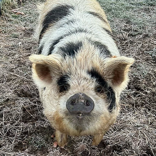 Julie Andrews – As sweet as pie, Julia is often the first to greet visitors with her soft snout and gentle curiosity. Her presence is calm, friendly, and welcoming.
