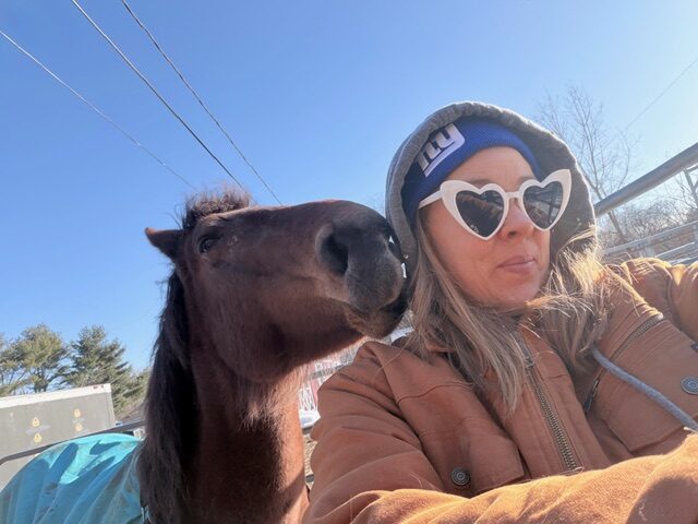 Sweetie – The embodiment of feminine energy in a horse, Sweetie is both sassy and nurturing. She approaches people with curiosity and isn’t shy about “advocating” for more petting—often nudging in just the right way to make her wishes known. Though she’s still finding her place in the herd, her warm and playful spirit is unmistakable. Michelle has formed a special bond with Sweetie (see the photo of the two, forehead to forehead).